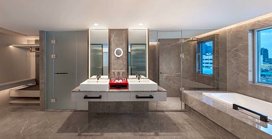 +1 (888) 385-8465Bienvenue au DoubleTree by Hilton Bangkok Ploenchit, où un accueil chaleureux avec des cookies vous attend ! Niché à seulement 5,6 kilomètres du cœur de Bangkok, cet hôtel quatre étoiles délicieux est votre billet pour découvrir le pouls vibrant de la ville tout en profitant d'une escapade sereine. Avec des prix à partir de $83, vous pouvez vous détendre avec style sans vous ruiner. Parfaitement situé au 12 Sukhumvit Soi 2, vous aurez un accès facile aux attractions locales, aux restaurants et à la célèbre vie de rue animée pour laquelle Bangkok est renommée.